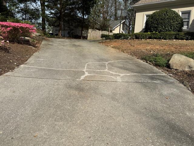Before: The homeowner's driveway in Atlanta, Georgia, was suffering from unsightly cracks and uneven surfaces, leading to potential hazards and further deterioration if left unchecked.
