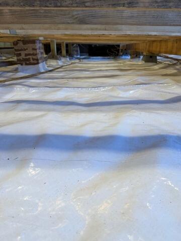 Due to high moisture levels, the insulation on the crawl space ceiling became soggy and fell. To seal out moisture from seeping into the crawl space, we installed CleanSpace, a vapor barrier on the walls and floor of the crawl space. In addition to CleanSpace, a SmartSump pump system was installed to remove water, prevent flooding, and reduce moisture.