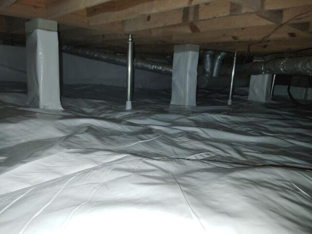 This crawl space needed some serious love and attention because it was in rough shape. Isaiah and his crew arrived to the home and first had to remove all the debris and seal the crawl space vents. Then they used CleanSpace crawl space encapsulation system to create a vapor barrier and keep moisture out of the air. They also used the CleanSpace to wrap the bottom of the piers. Then they installed a SaniDry Sedona Dehumidifier, along with a condensation pump. This will control the relative humidity in the air and the condensation pump will remove water collected from the dehumidifier. Now the crawl space looks amazing and is protected from moisture and humidity!