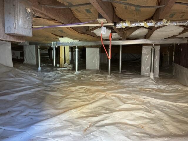 The homeowner was informed of the risks of having moisture in their crawl space and the crew was able to come up with a detailed plan to address the issue. The crew would then come in and put their plan into action to eliminate the moisture and prevent any future problems. To permanently stabilize the floor above, SmartJack Support Posts were installed. In order to fix the moisture problem, a later appointment was scheduled for cleaning the area for mold, wrapping it in CleanSpace Vapor Barrier, installing a superior sump pump system, and installing our SaniDry Sedona dehumidifier to ensure clean, dry, and healthy air.